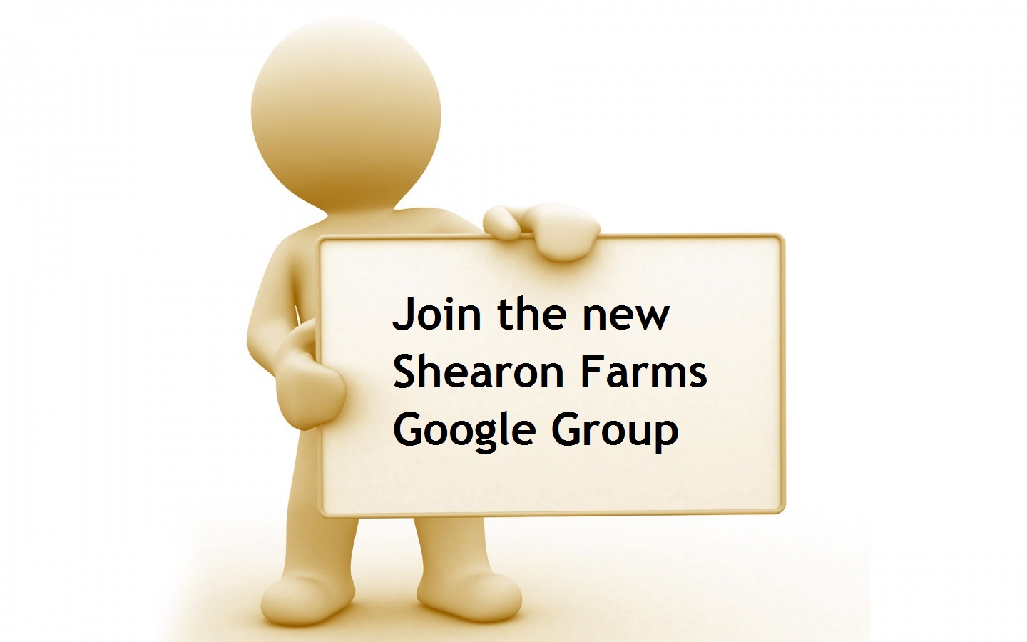 Please click on the link to join the group: http://groups.google.com/group/shearonfarms